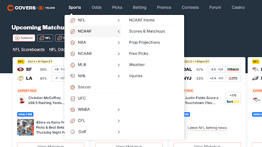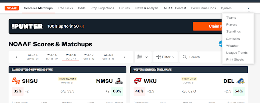 Any of the links you may have used in the drop-down menu above can still be found by selecting the specific sport home, example NCAAF Home (see below hyperlinks). This will take you to the screen shot below where all the previous links exist.